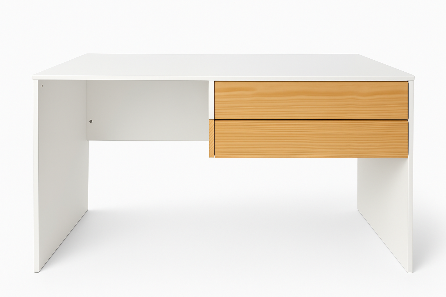 Preço sugerido: R$ 250.00 (novo R$ 679.00) Descrição: Escrivaninha Basic 130 cm – Branca com Gaveta . feita de Pinus e com passa fio no lado direito. As gavetas foram adaptadas para deixar espaço para as pernas …